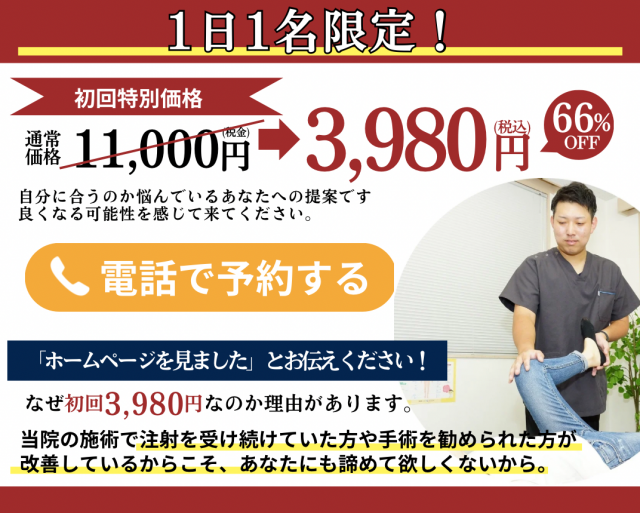 現在のあなたにとって必要なものは何なのかを理解して、1日でも早く施術をして、早く改善していただく、そのための特別価格です。